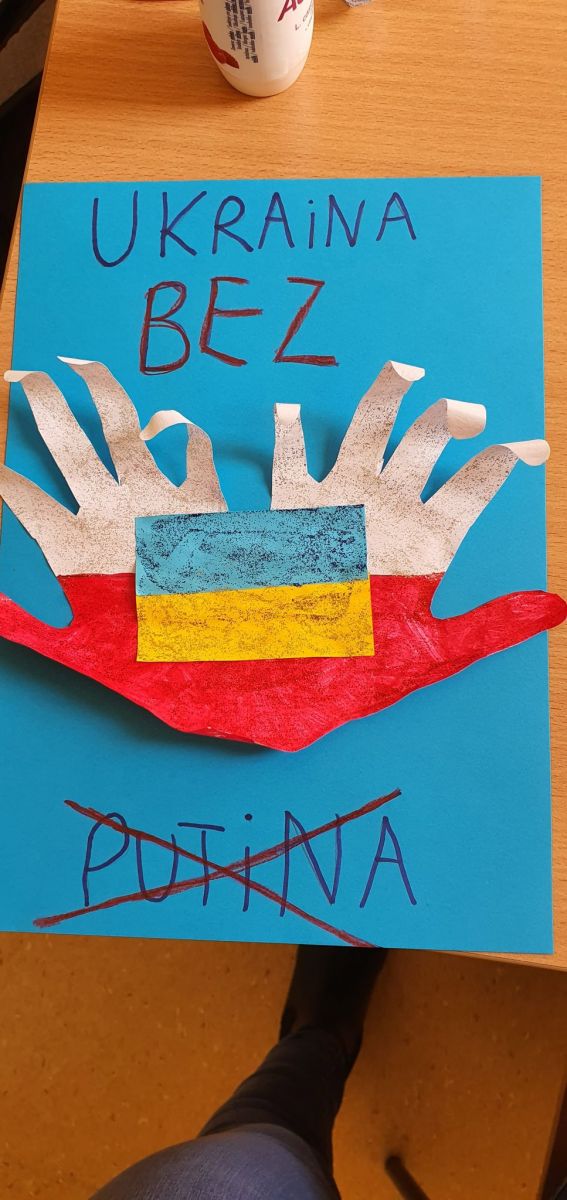 Pokazała jednak coś dobrego: w obliczu zła jesteśmy w stanie się zjednoczyć, ruszyć z pomocą, dobrym słowem, wyrazami przyjaźni i wsparcia. W naszej szkole powstały różne gazetki, plakaty, prace, projekty, akcje, które zrodziły się z prostej, dziecięcej potrzeby serca!