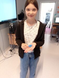 Kontynuując działania kreatywne z drukiem 3D uczniowie przygotowali zaprojektowane wcześniej breloczki do wydruku przy pomocy programu do cięcia obiektów 3D. Wydruki są czasochłonne, więc poniżej prezentujemy tylko kilka pierwszych prac.