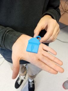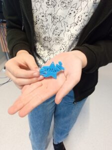 Kontynuując działania kreatywne z drukiem 3D uczniowie przygotowali zaprojektowane wcześniej breloczki do wydruku przy pomocy programu do cięcia obiektów 3D. Wydruki są czasochłonne, więc poniżej prezentujemy tylko kilka pierwszych prac.