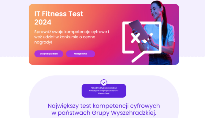 IT Fitness Test to największy bezpłatny test kompetencji cyfrowych online dla krajów Grupy Wyszehradzkiej i Ukrainy. Został on oficjalnie zainaugurowany podczas konferencji online, podczas której Prezydent Rzeszowa, Konrad Fijołek, podpisał porozumienie o współpracy ze Związkiem Cyfrowa Polska w ramach IT Fitness Test 2024.