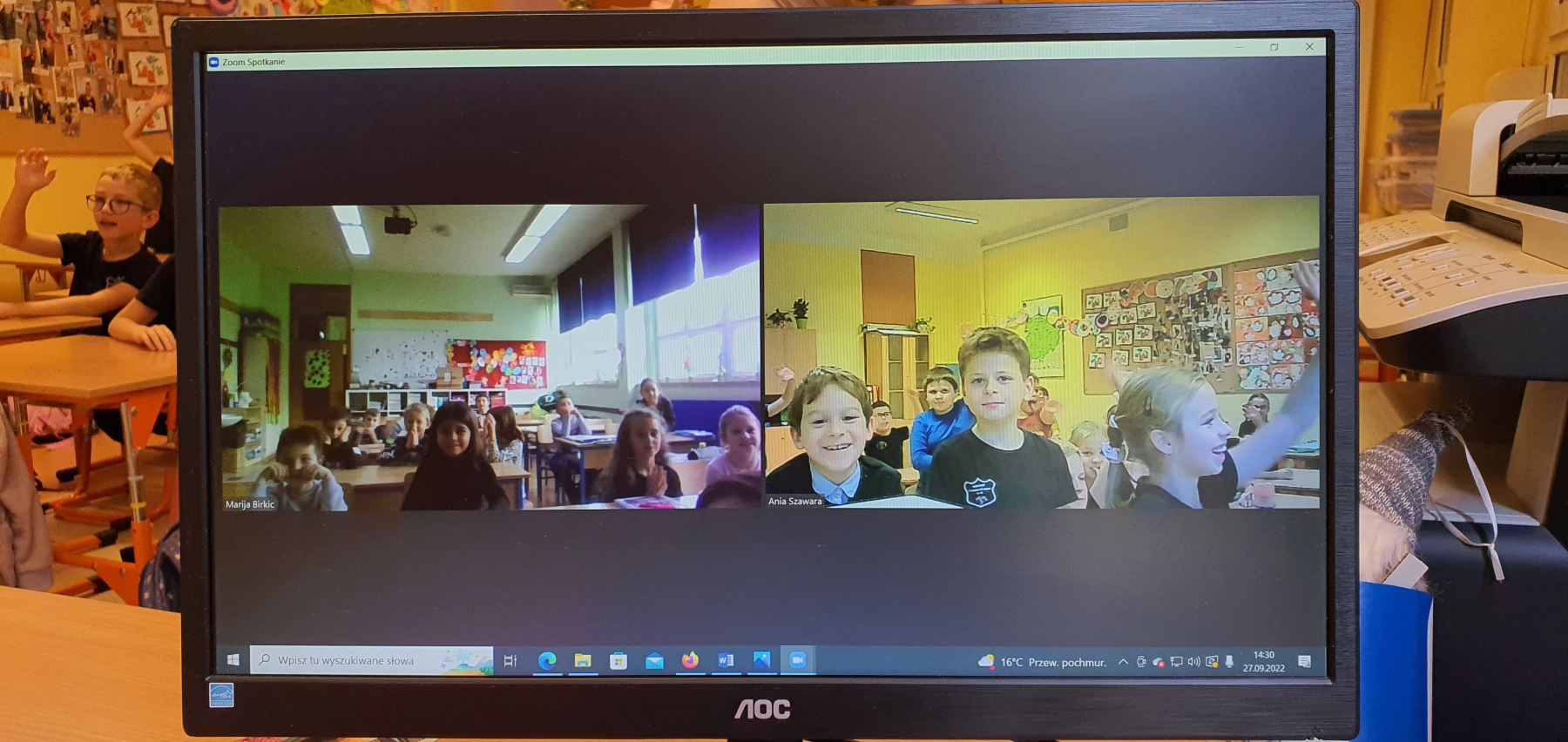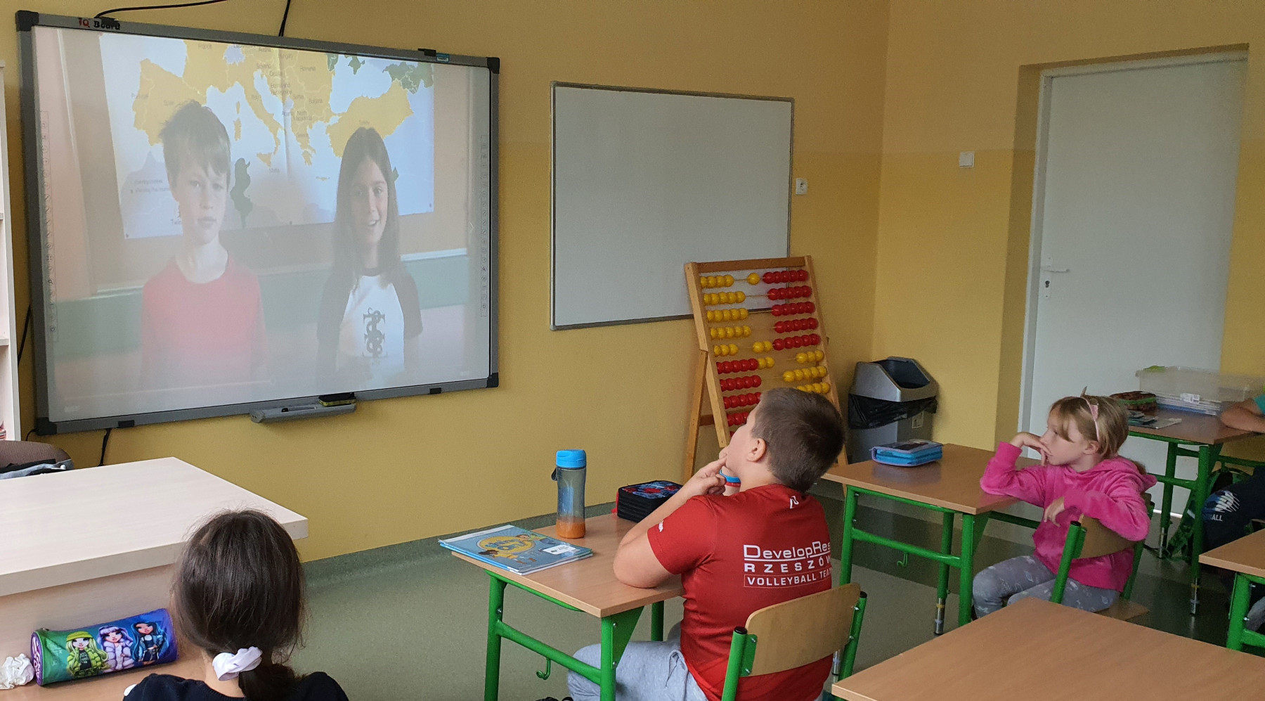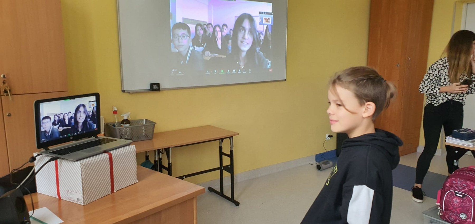 Klasa 3b natomiast połączyła się z uczniami z Chorwacji. Była to również ciekawa lekcja. Nasi uczniowie nauczyli się kilku słów po chorwacku, poznali rówieśników z innego kraju oraz mogli zapytać w języku angielskim:
