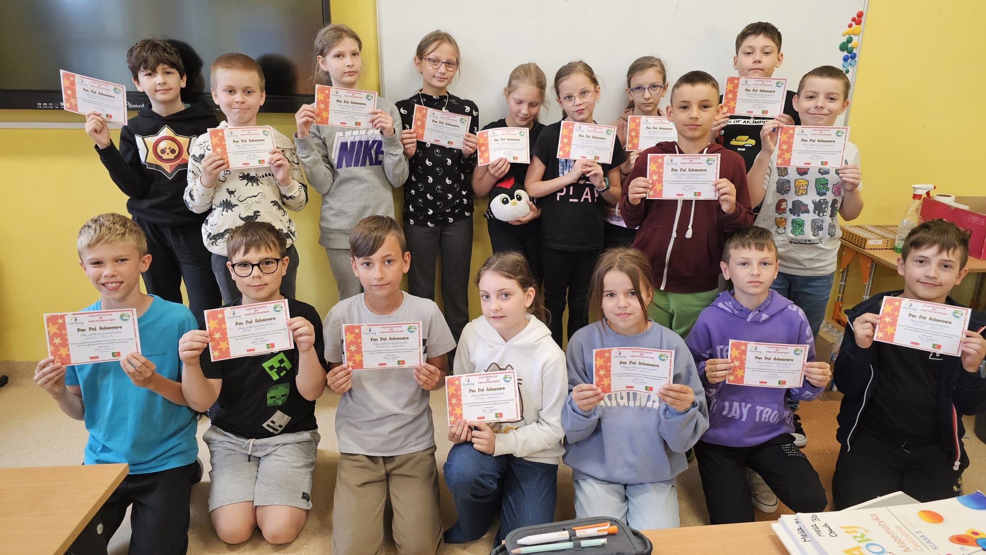 Uczniowie klas trzecich w tym roku szkolnym biorą udział w projekcie edukacyjnym eTwinning „Pen pal Adventure”. Głównym celem projektu jest rozwijanie znajomości języka angielskiego u małych dzieci poprzez wymianę listów, ale także poprzez wykorzystanie narzędzi cyfrowych w celu zachęcania do interakcji i rozwijania angażujących wspólnych działań opartych na treściach programowych. Zachęcając do skutecznej komunikacji i interakcji w języku angielskim z uczniami z różnych krajów europejskich, chcemy zapewnić aktywne i znaczące doświadczenia edukacyjne. Pod koniec projektu dzieci nie tylko poprawią swoje umiejętności komunikacyjne w języku angielskim, ale także rozwiną trwałe przyjaźnie ze swoimi międzynarodowymi rówieśnikami oraz głębsze zrozumienie i docenienie różnorodności kulturowej. Ponadto projekt przyczyni się do rozwoju poczucia obywatelstwa europejskiego i globalnego rozwoju dzieci poprzez promowanie różnych umiejętności i wartości. Zgodnie z założeniami projektu uczniowie najpierw poznają imiona i nazwiska swoich partnerów. Każdy uczeń dowie się z kim będzie korespondować w ciągu roku.